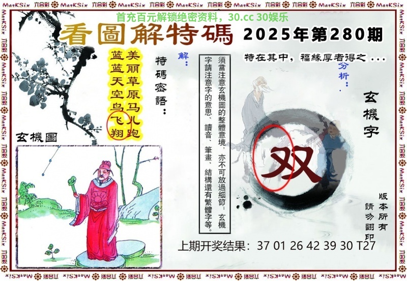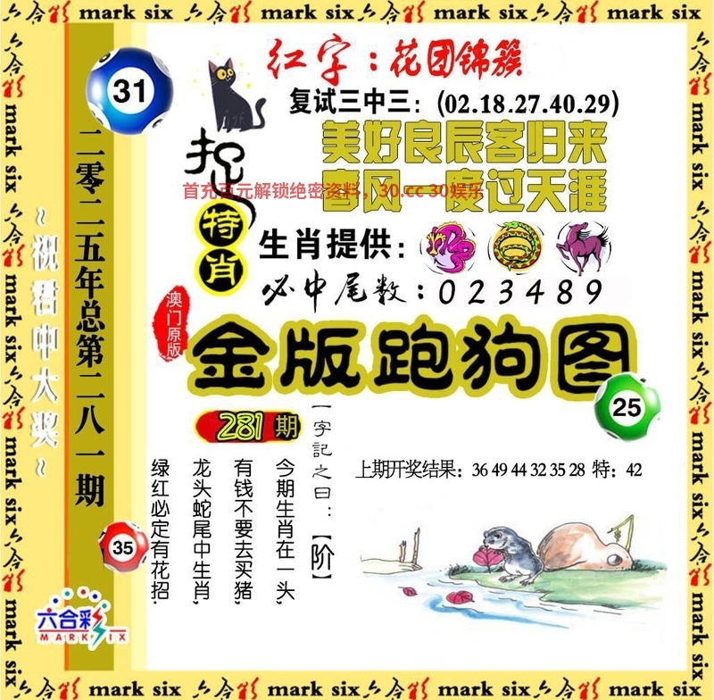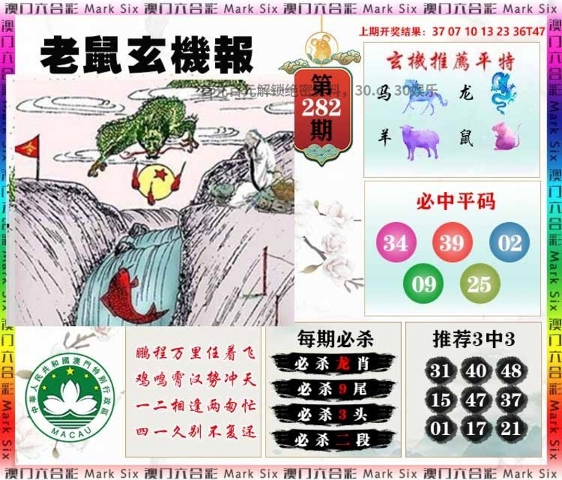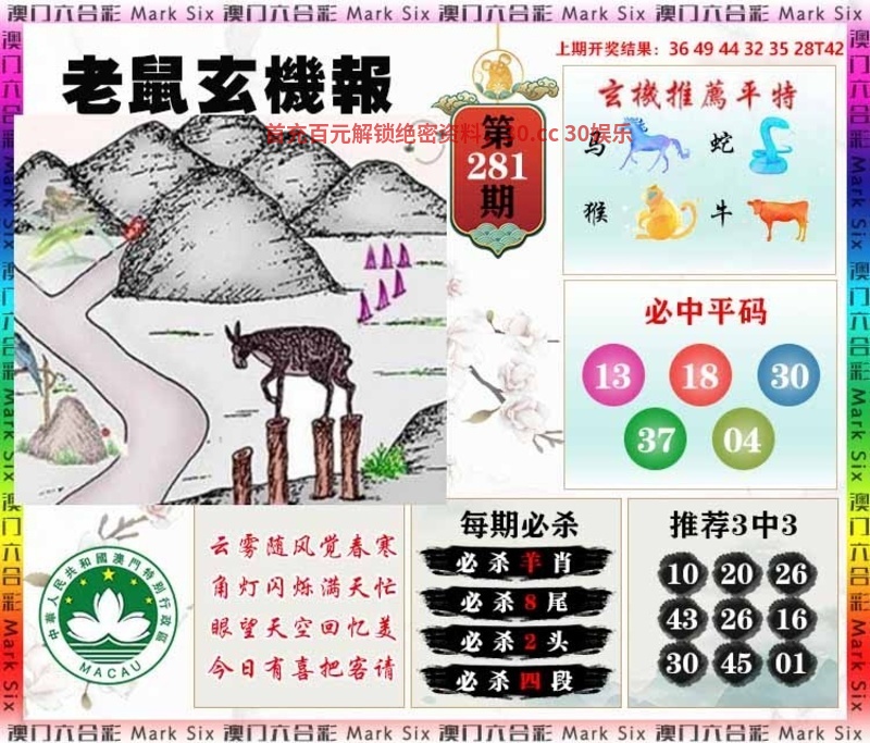 281期:天地两肖【地肖+龙马】开:羊47准 |